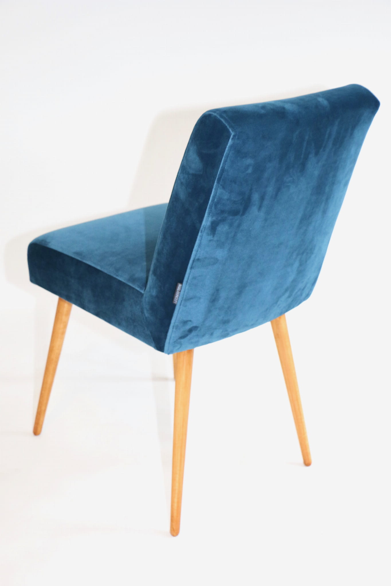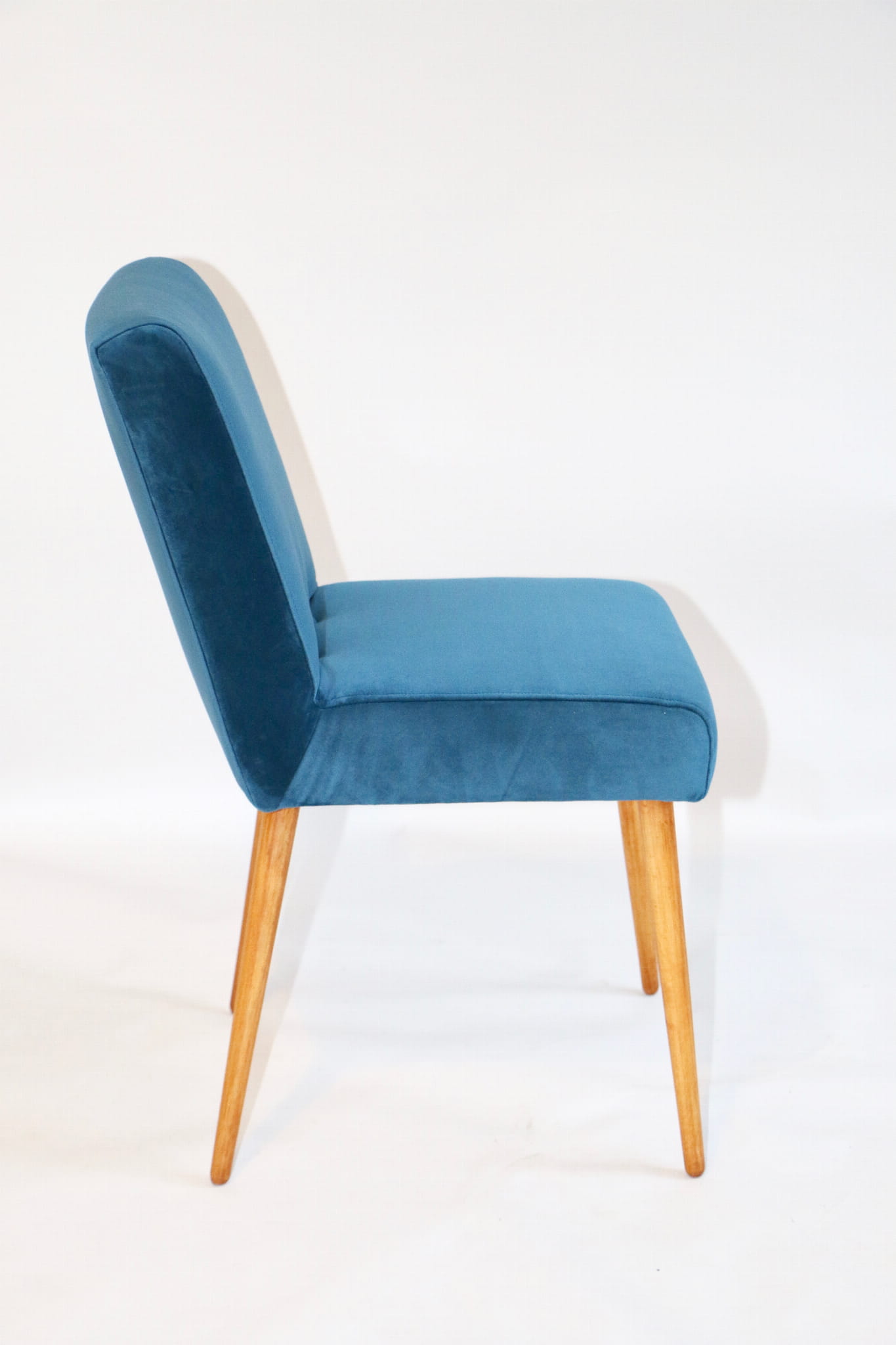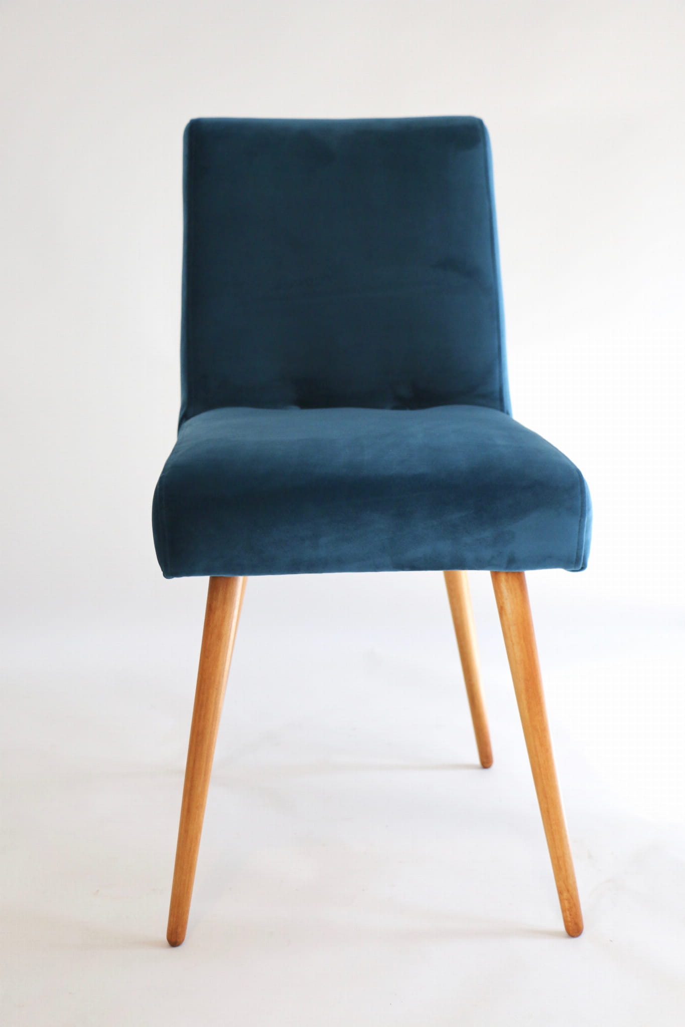 Odrestaurowane, stelaż drewniany w naturalnym kolorze . Nowe obicie pokryte aksamitnym materiałem tapicerskim velvet w pięknym morskim kolorze .