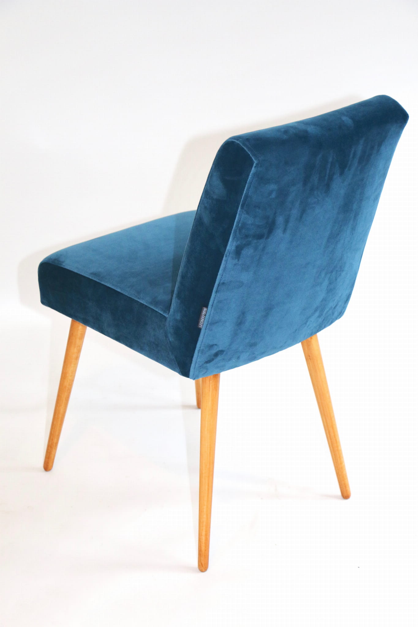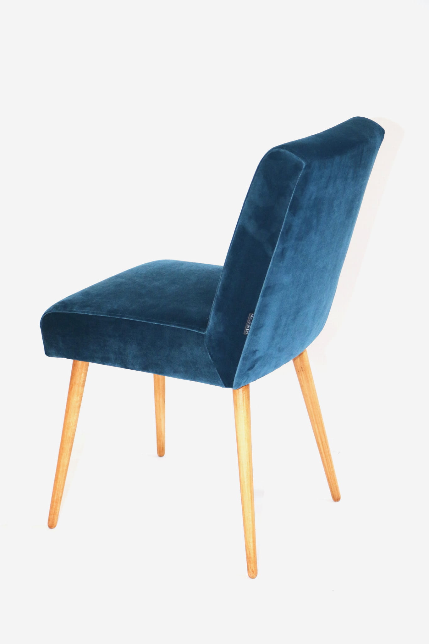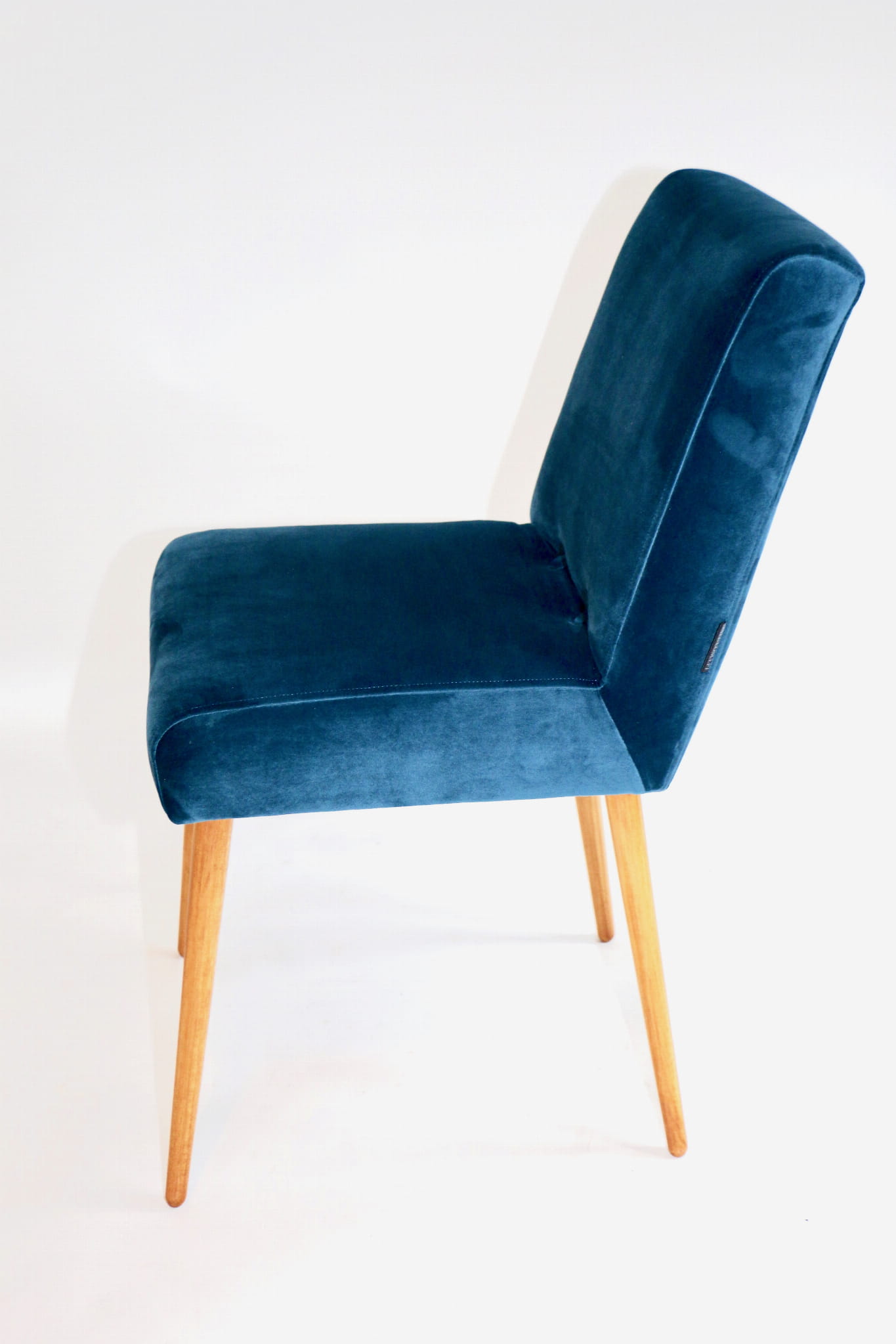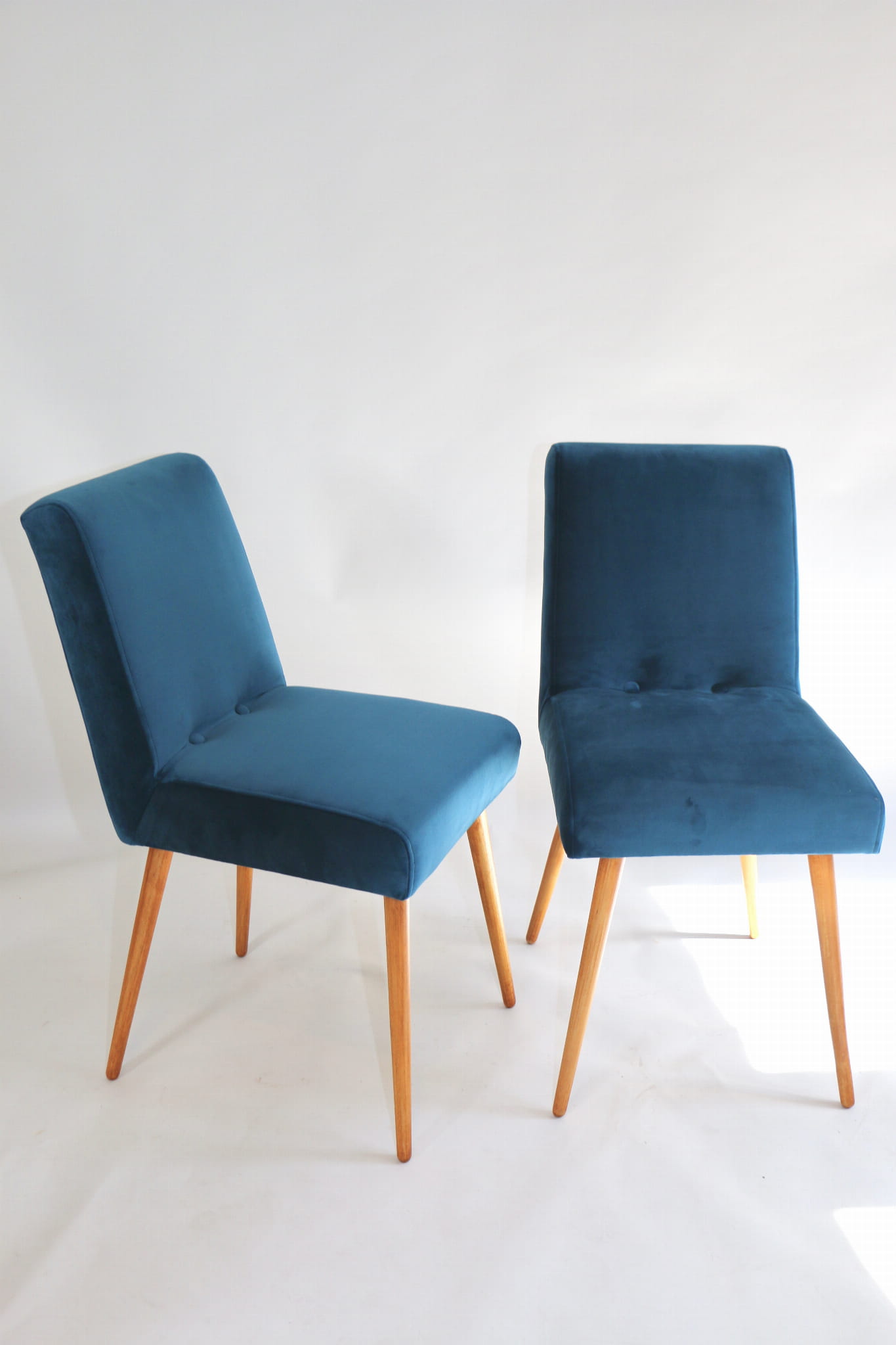 Odrestaurowane, stelaż drewniany w naturalnym kolorze . Nowe obicie pokryte aksamitnym materiałem tapicerskim velvet w pięknym morskim kolorze .