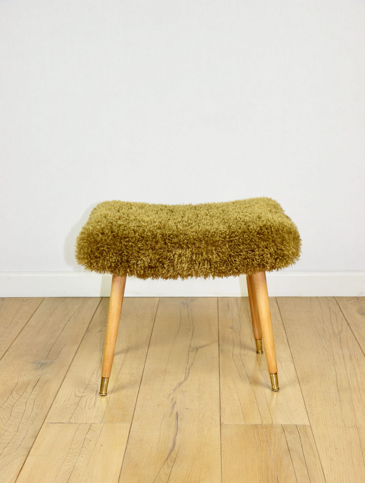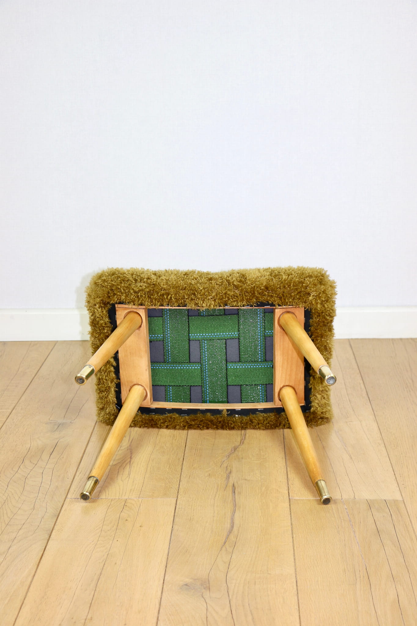Taboret Edmund Homa siedzisko wysokie włosie Khaki / Oliwkowy - nogi bukowe złocone