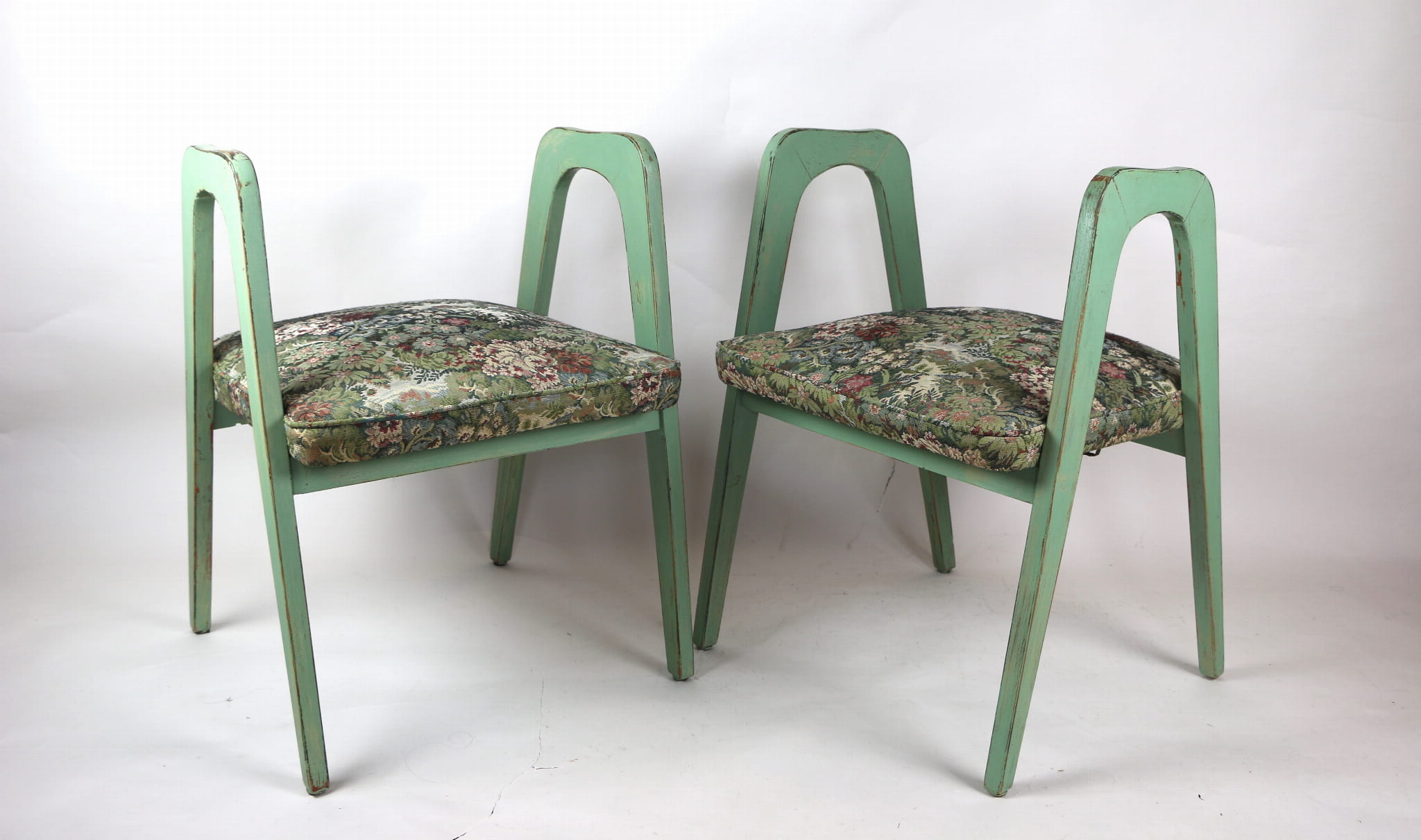 Taboret siedzisko zydel na bazie foteli zielone w kwiaty - dostępne 2 sztuki