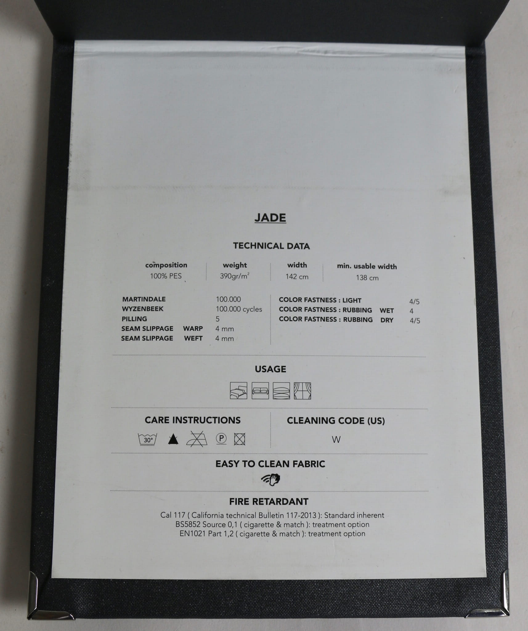 SKŁAD: 100 % Poliester, ścieralność 100 000 cykli, gramatura 390g/mb, podkład sztywny i gruby dający dużą wytrzymałość tkaniny.